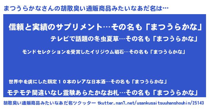 | ヒーロー風カッコイイあだ名 | 『慈愛の使者まつうらかな』 |