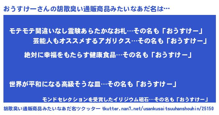| 男性向けラノベタイトル風あだ名 | 『おうすけーという概念が存在しない退屈な世界 』 |
