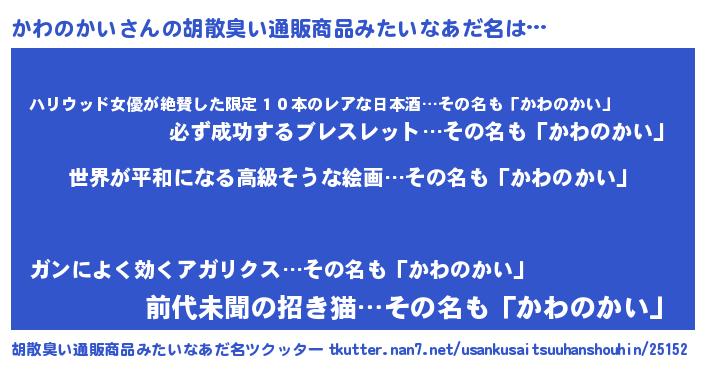 | 意味不明あだ名 | 『かわのかいフォーエバー』 |