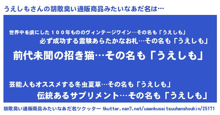 | 意味不明あだ名 | 『永久保存うえしも』『ペロリンうえしも』 |