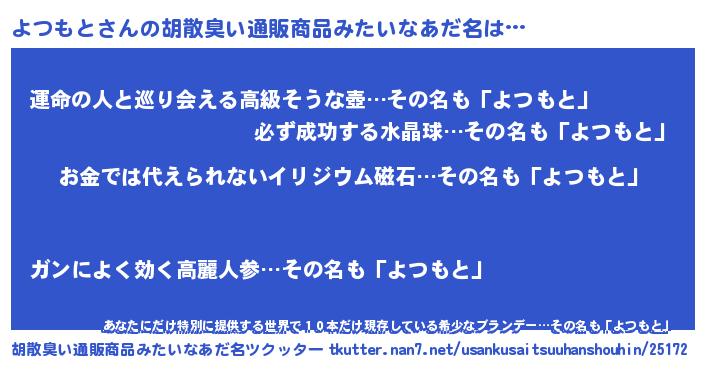 | ヒーロー風カッコイイあだ名 | 『慈愛の使者よつもと』『仮面ヨツダー』 |