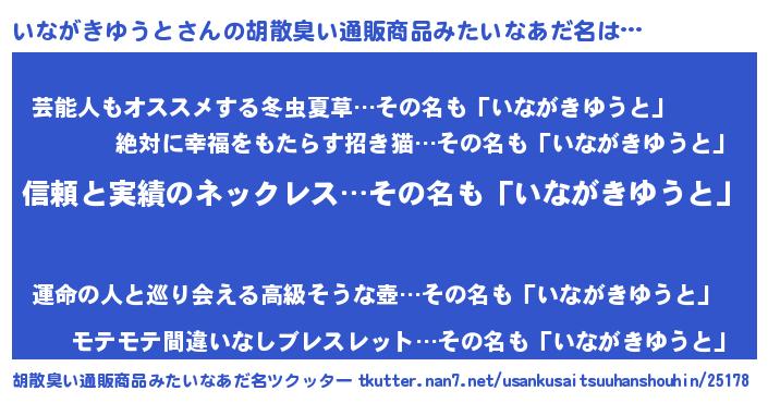 | 意味不明あだ名 | 『とにかく怪しいいながきゆうと』 |
