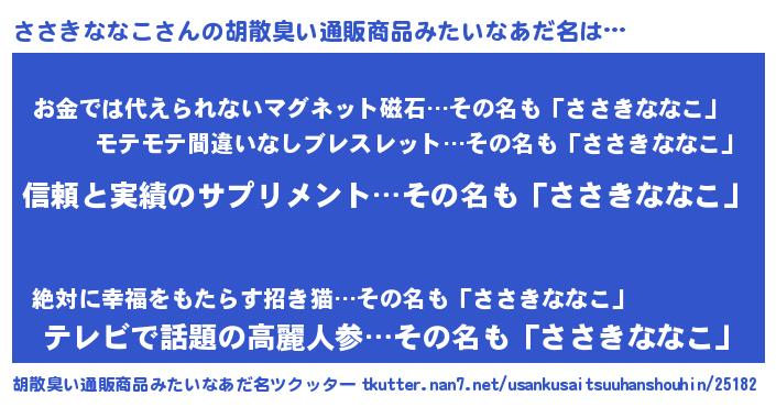| 欧米人風あだ名 | 『ウサインささきななこ』 |