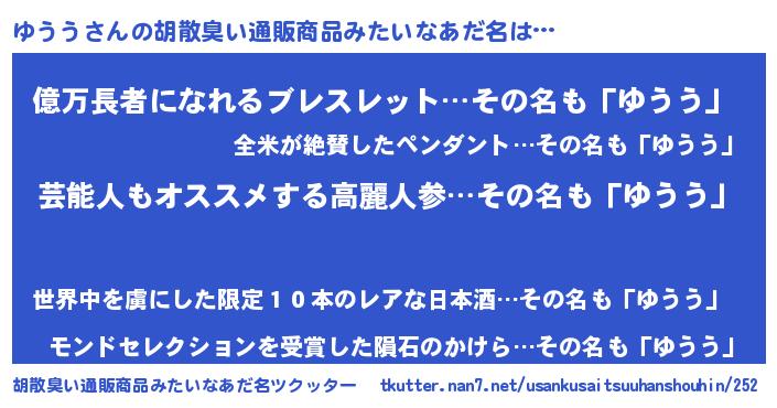 | ヘコむあだ名 | 『ゆうにー』『ゆうっぺ』『酢こんぶ』 |