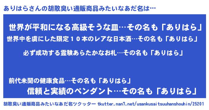 | 男性向けラノベタイトル風あだ名 | 『ありはらの憂鬱』『緋弾のアリハラ』 |