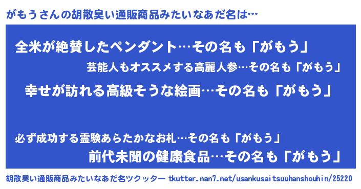 | ポケモン風あだ名 | 『メロガッモ』『ガモウダネ』 |