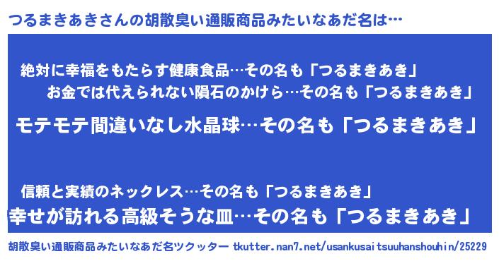 | 男性向けラノベタイトル風あだ名 | 『つるまきあきに滅ぼされるだけの簡単なお仕事です』 |