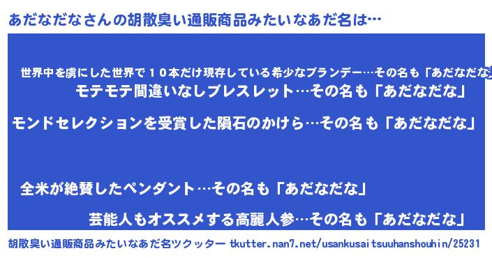 | ヘコむあだ名 | 『あだもー』『あだっ子』『レバニラ』 |