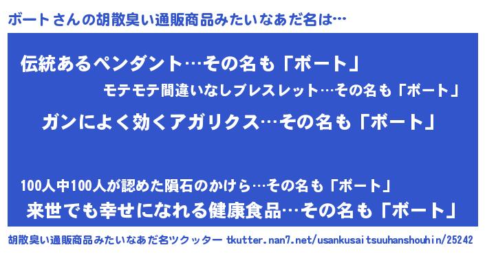 | ヘコむあだ名 | 『ボー太郎』『ボート(小並感)』 |