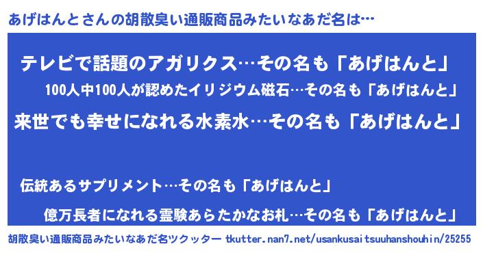 | ヘコむあだ名 | 『あげはんと(苦笑)』『あげもー』 |