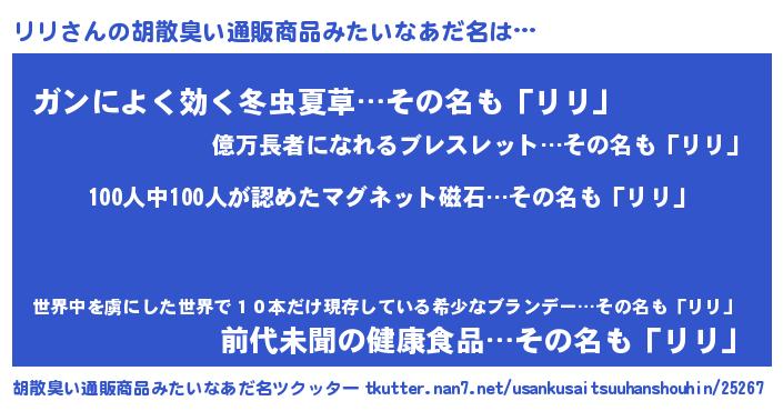 | 意味不明あだ名 | 『眠気覚ましガムリリ味』『自称リリ』 |