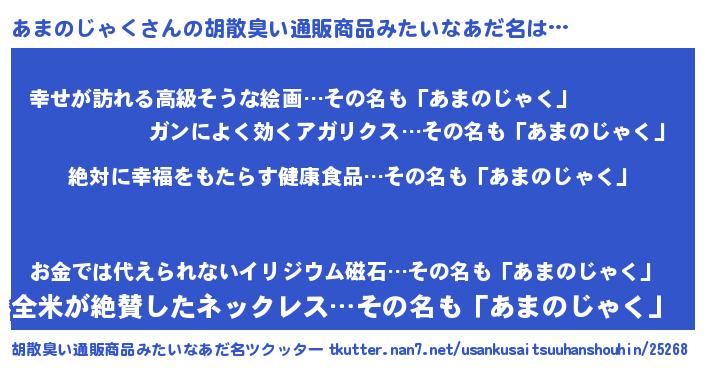 | 男性向けラノベタイトル風あだ名 | 『あまのじゃくという概念が存在しない退屈な世界 』 |