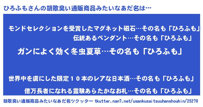 | ヘコむあだ名 | 『ひろっふぃ~』『ひろを』 |