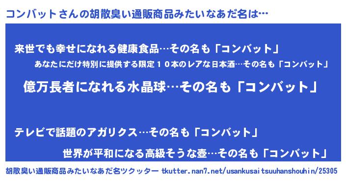 | ヘコむあだ名 | 『コンふぇ~』『コンバット(苦笑)』 |