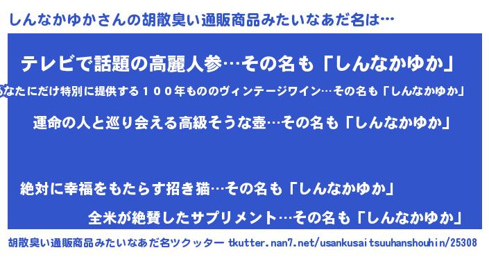 | 欧米人風あだ名 | 『しんなかゆかクリステル』 |