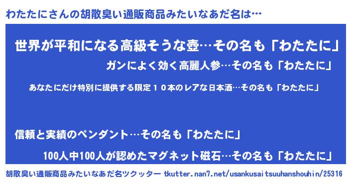 | 意味不明あだ名 | 『住所不定無職わたたに(40歳)』 |