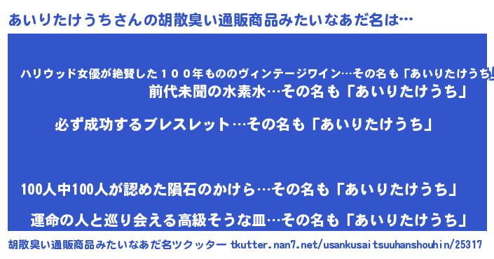 | 意味不明あだ名 | 『ペロリンあいりたけうち』 |