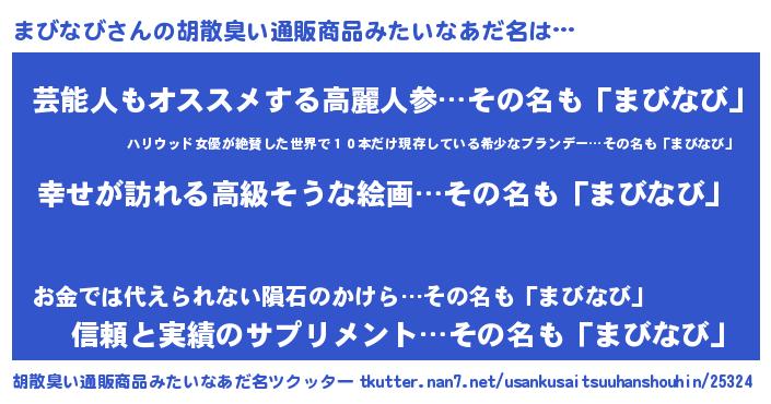 | ヘコむあだ名 | 『つくし』『まびを』『まびにー』 |
