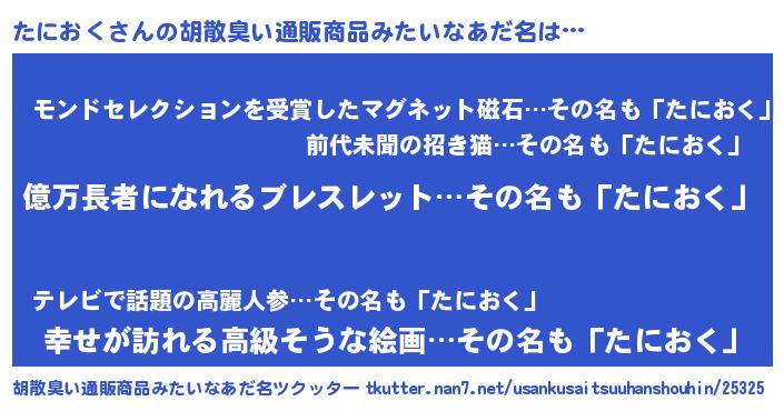 | 意味不明あだ名 | 『ペロリンたにおく』『永久保存たにおく』 |