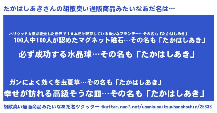 | 肩書あだ名 | 『たかはしあき店長』『たかはしあき大将』 |