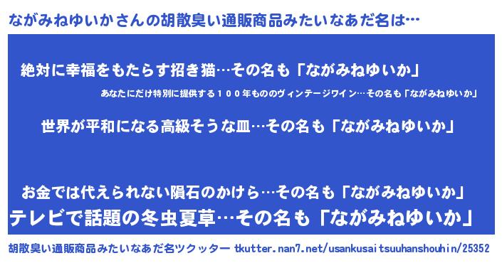 | ヘコむあだ名 | 『なまこ酢』『ながみねゆいか(笑)』 |