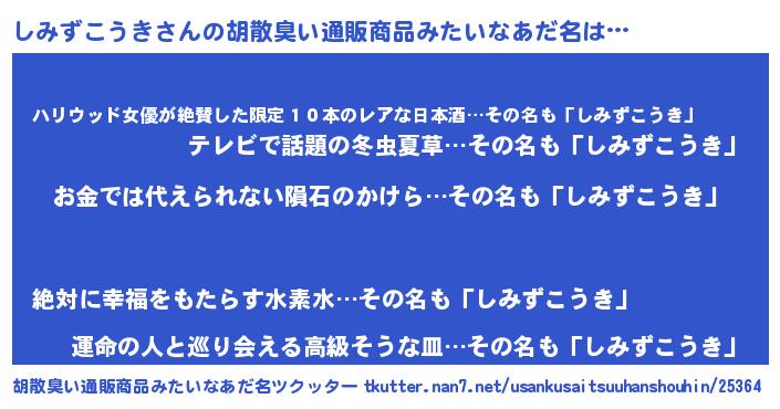 | ヘコむあだ名 | 『豆乳』『しみずこうき(遠い目)』 |