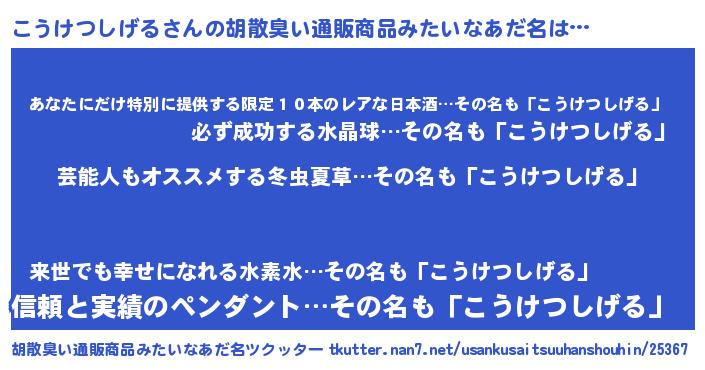| 意味不明あだ名 | 『自称こうけつしげる』 |