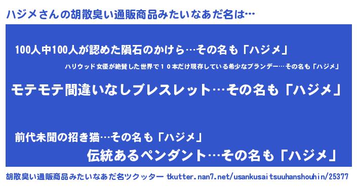 | ヒーロー風カッコイイあだ名 | 『スーパーハジメ』『慈愛の使者ハジメ』 |