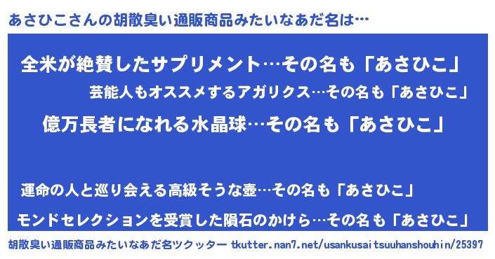 | 意味不明あだ名 | 『ペロリンあさひこ』『自称あさひこ』 |