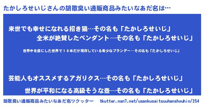 | 意味不明あだ名 | 『住所不定無職たかしろせいじ(91歳)』 |