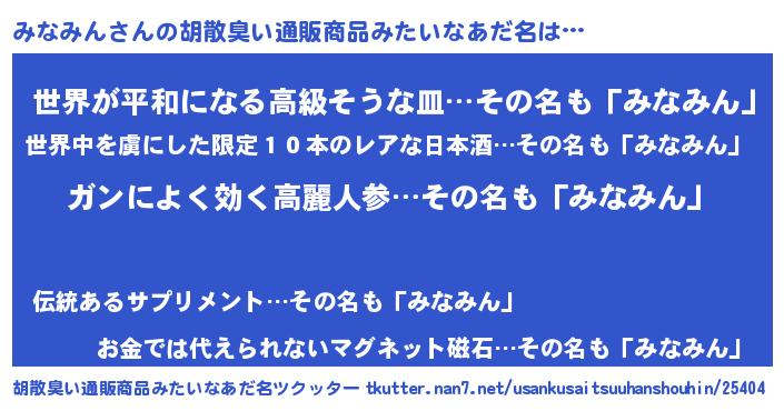 | 意味不明あだ名 | 『めかぶ科みなみん属』『自称みなみん』 |