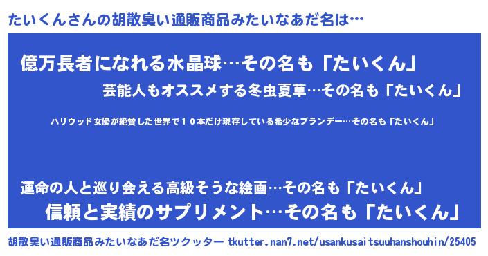 | ヘコむあだ名 | 『たいもー』『たいっ子』『つくし』 |