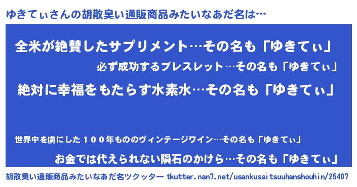| ヘコむあだ名 | 『ゆきてぃ(遠い目)』『ゆきお』 |