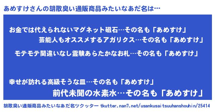 | ヒーロー風カッコイイあだ名 | 『スーパーアメスケ』『ネオアメスケ』 |