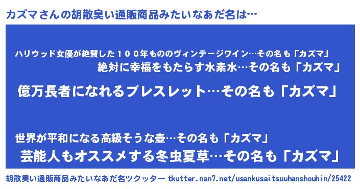 | 恥ずかしいあだ名 | 『プリティーカズマ』『カズマデラックス』 |