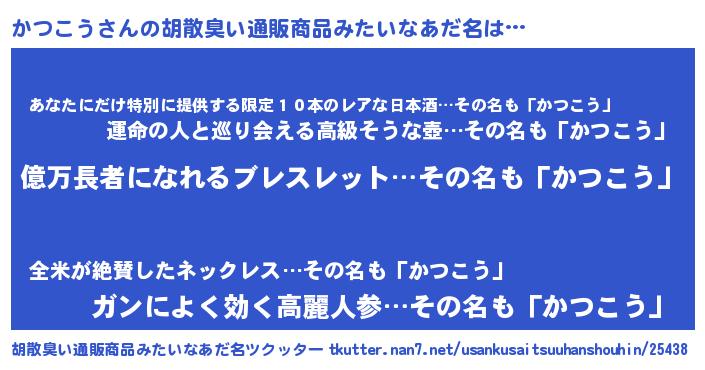 | ヘコむあだ名 | 『かつふぇ~』『酢こんぶ』『かつを』 |