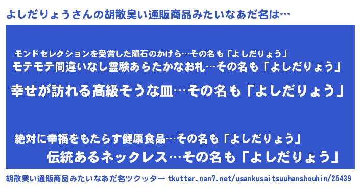| 意味不明あだ名 | 『よしだりょうフォーエバー』 |