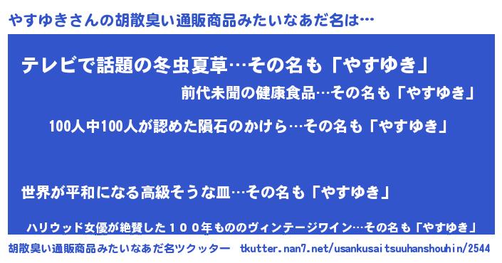 | ヘコむあだ名 | 『やすゆき(震え声)』『なまこ酢』 |