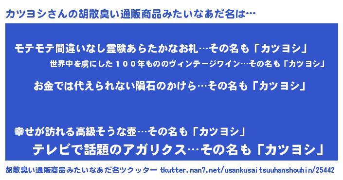 | 女子向けラノベタイトル風あだ名 | 『カツヨシ恋絵巻』『闇のカツヨシ』 |