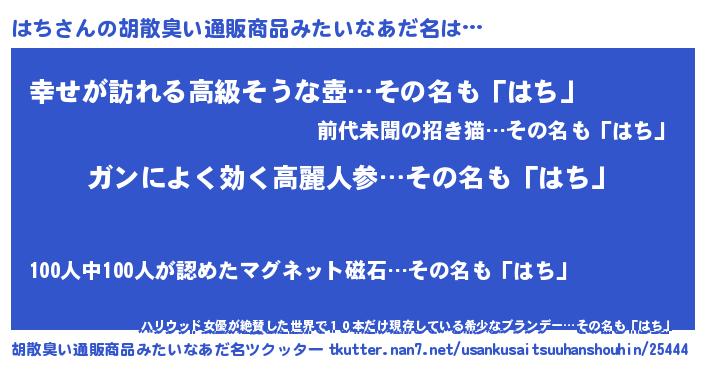 はちさんの胡散臭い通販商品みたいなあだ名をツクッター!