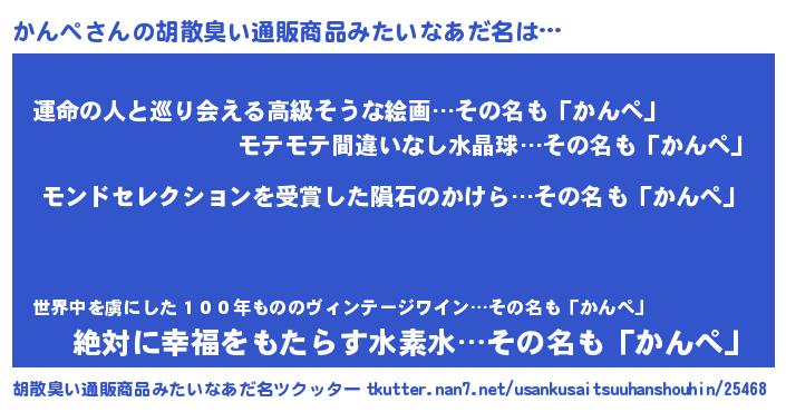 かんぺさんの胡散臭い通販商品みたいなあだ名をツクッター!