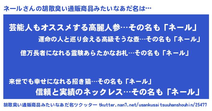| 意味不明あだ名 | 『ペロリンネール』『自称ネール』 |