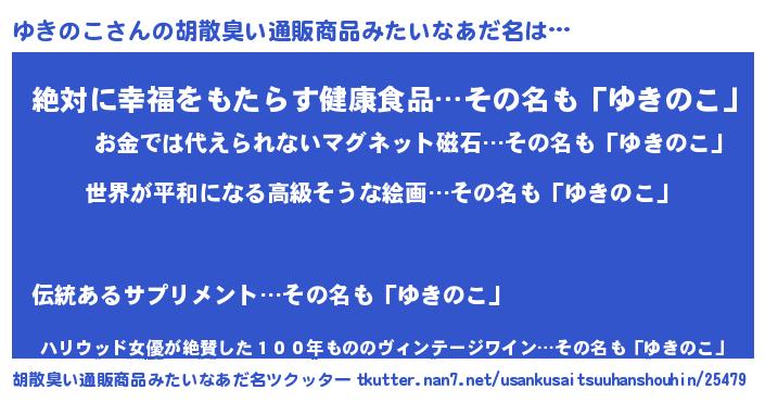 | 女子向けラノベタイトル風あだ名 | 『ゆきのこ伯爵の花嫁』『ゆきのこ恋絵巻』 |