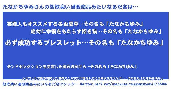 | ヘコむあだ名 | 『たなにー』『たなかちゆみ(震え声)』 |