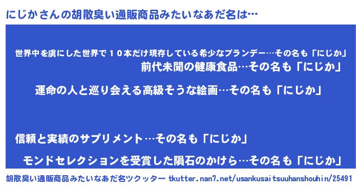 | ヒーロー風カッコイイあだ名 | 『ウルトラにじかマン』『仮面ニジダー』 |