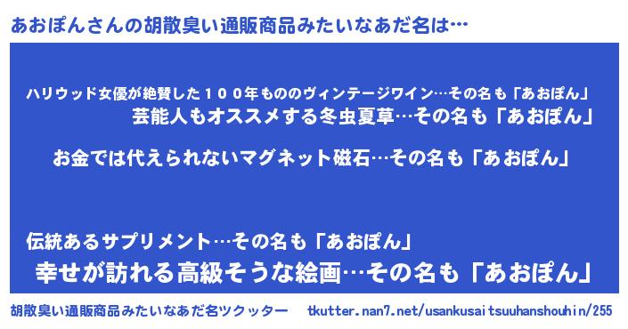 | 意味不明あだ名 | 『たけのこ科あおぽん属』『自称あおぽん』 |