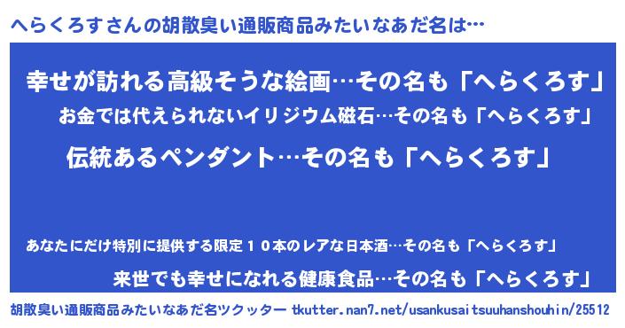 | 意味不明あだ名 | 『とにかく怪しいへらくろす』 |