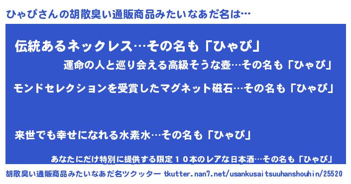 | 欧米人風あだ名 | 『ダニエルひゃぴ』『ウサインひゃぴ』 |