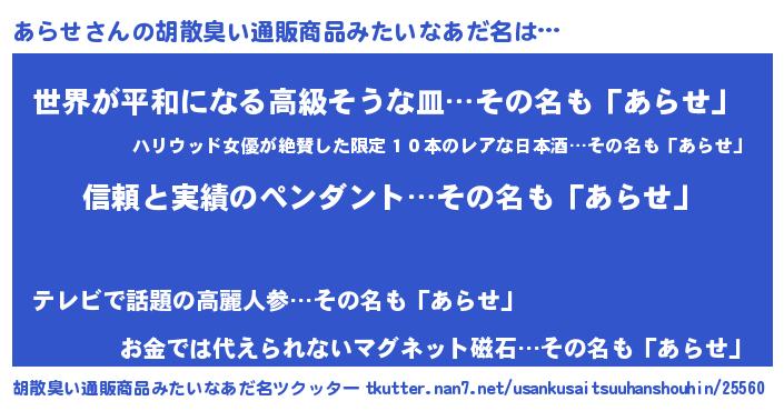 | 意味不明あだ名 | 『とにかく怪しいあらせ』 |