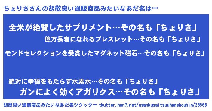 | 肩書あだ名 | 『ちょりさ教授』『ちょりさ団長』 |